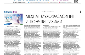 “O‘zbekiston ovozi” gazetasining 45-sonida Oliy Majlis Qonunchilik palatasidagi O‘zXDP fraksiyasi a’zosi Firdavs SHARIPOVning “Mehnat muhofazasining ishonchli tizimi” sarlavhali maqolasi chop etildi...
