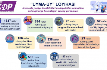 «Uyma-uy» loyihasi doirasida partiya tashkilotlari va deputatlari tomonidan xotin-qizlarga ko‘rsatilgan amaliy yordamlari