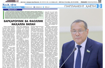 «Халқ сўзи» газетасининг 213-сонида Ўзбекистон ХДП Марказий Кенгаши раиси, Олий Мажлис Қонунчилик палатасидаги партия фракцияси раҳбари Улуғбек ИНОЯТОВнинг «Барқарорлик ва фаоллик маҳалла билан» сарлавҳали мақоласи чоп этилди