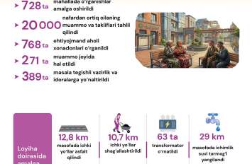 Инфографика: “Бир маҳалла – бир ташаббус” лойиҳаси доирасида амалга оширилган ишлар