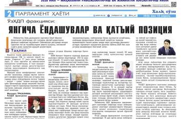 «Халқ сўзи» газетасининг 72-сонида Олий Мажлис Қонунчилик палатасидаги Ўзбекистон ХДП фракциясининг жорий йил биринчи чорагидаги фаолиятига бағишланган «ЎзХДП фракцияси: Янгича ёндашувлар ва қатъий позиция» сарлавҳали мақола чоп этилди