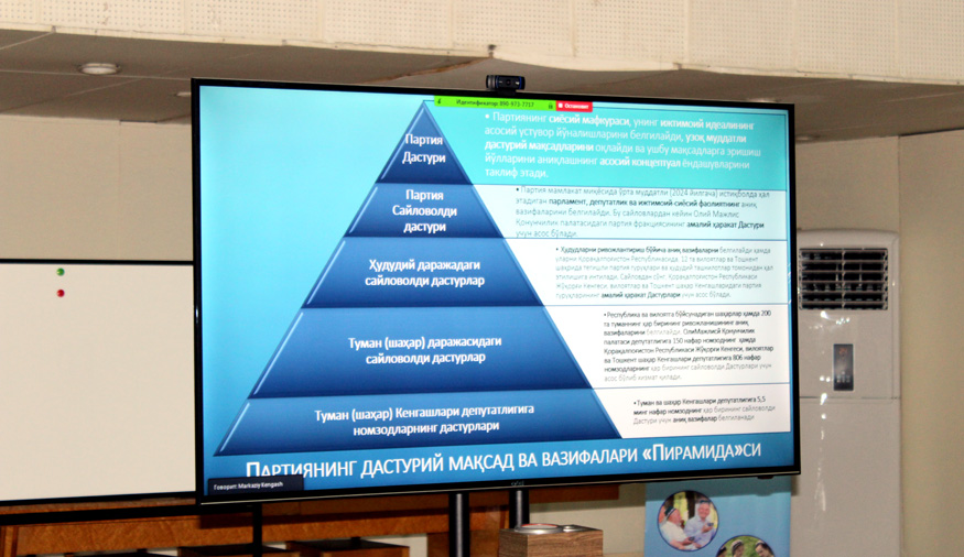 – Биз олдинги видеоселектор йиғилишида партиямиз Дастур ва Сайловолди дастурини “пирамида” шаклида тузилишини таклиф қилган эдик. Ушбу таклифимиз барча партиядошларимиз ҳамда экспертларимиз томонидан тўлиқ қўллаб-қувватланди.