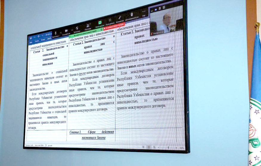 Парламент қуйи палатасидаги Ўзбекистон ХДП фракцияси аъзолари видеомулоқот шаклидаги йиғилишда “Ногиронлиги бўлган шахсларнинг ҳуқуқлари тўғрисида”ги қонуни лойиҳасини моддама-модда кўриб чиқмоқда.