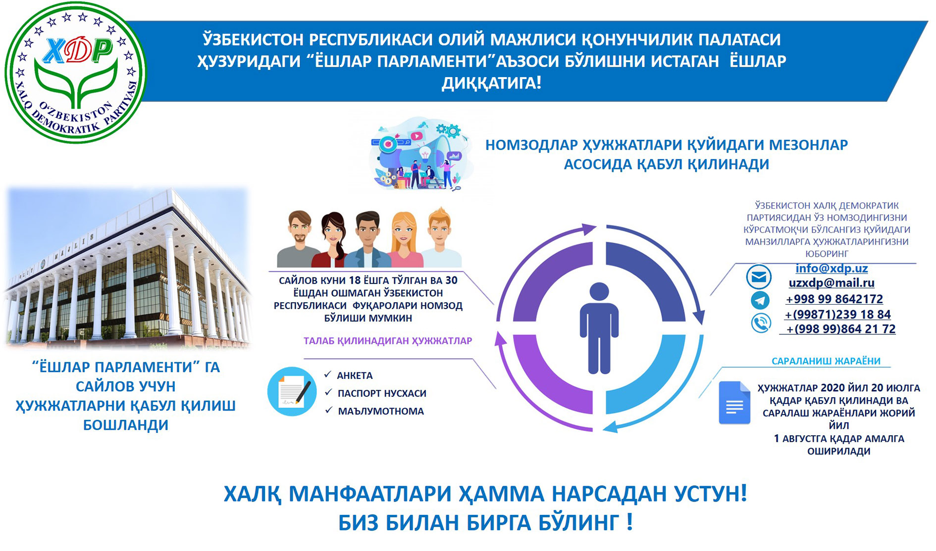 Ёшлар парламентига сайловларда иштирок этиш учун ҳужжатлар қабул қилиниши бошланди (инфографика)