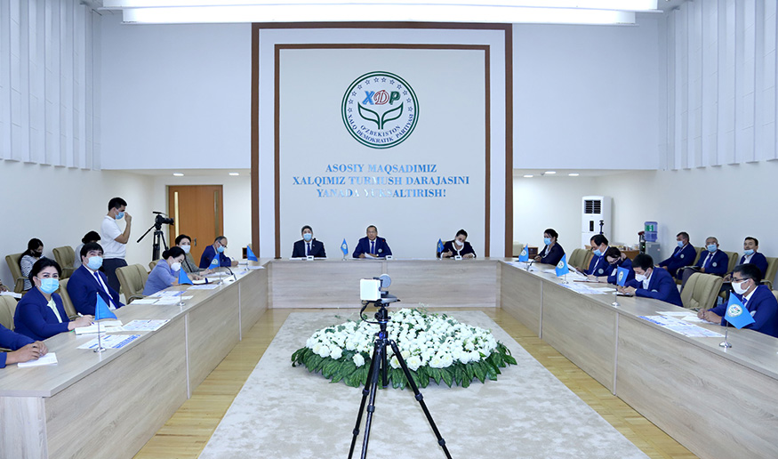 Йиғилишда пандемия даврида партия ташкилотлари ва депутатлик бирлашмалари томонидан амалга оширилган ишлар сарҳисоб қилинмоқда. Жорий йил 15 августдан республика бўйича карантин тартиби босқичма-босқич юмшатилиши жараёнида партия ташкилотлари ва депутатлик бирлашмаларининг асосий вазифаларини белгилаб олиш масаласи муҳокама этилмоқда.