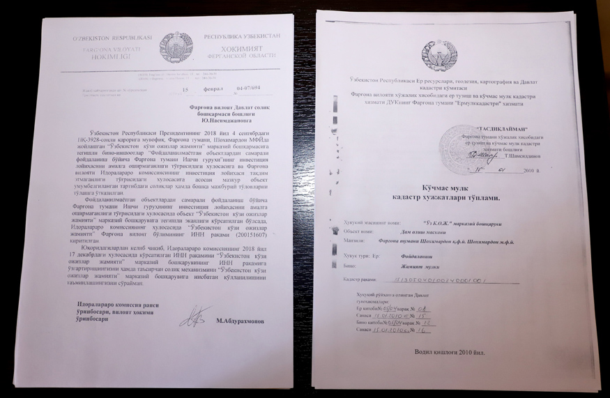 Дам олиш маскани билан боғлиқ иш жорий йил 16 сентябрь куни Тошлоқ туман маъмурий судида кўрилган. Суд ҳужжатларидаги маълумотларга кўра, Фарғона вилоят идоралараро комиссияси томонидан 2018 йил 17 декабрь куни дам олиш масканига инвестиция лойиҳаси тақдим этилмаган, деган важ билан хулоса тузилган. Ушбу хулоса давлат солиқ инспекциясининг Фарғона туман бўлимига тақдим этилиб, дам олиш масканига нисбатан таъсирчан чоралар қўллаш сўралган. Амалдаги меъёрий ҳужжатларга кўра, инвестиция лойиҳаларини киритиш шарти фақатгина ишлаб чиқариш объектларига тадбиқ этилиши лозим. Дам олиш маскани эса мавсумий объект ҳисобланиб, бундай объектларга нисбатан инвестиция шарти кўрсатилмаган.