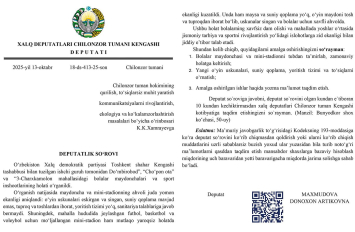 Deputat Chilonzor tuman hokimligiga so‘rov yubordi