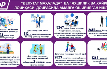 “Депутат маҳаллада” ва "Яхшилик ва хайрия" лойиҳаси доирасида амалга оширилган ишлар